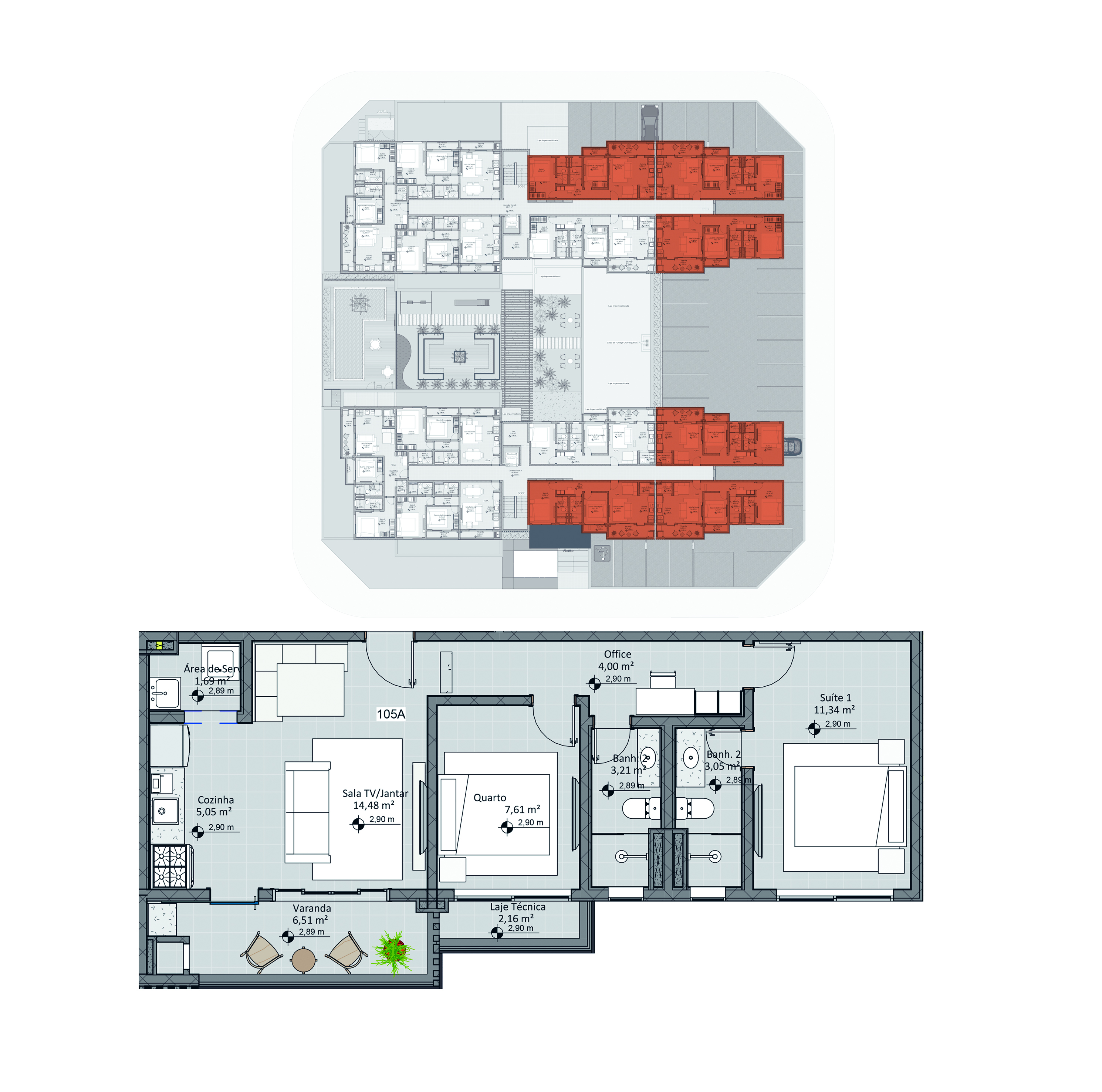 Os apartamentos são pensados para proporcionar conforto e tranquilidade, aliado à praticidade e design diferenciado.